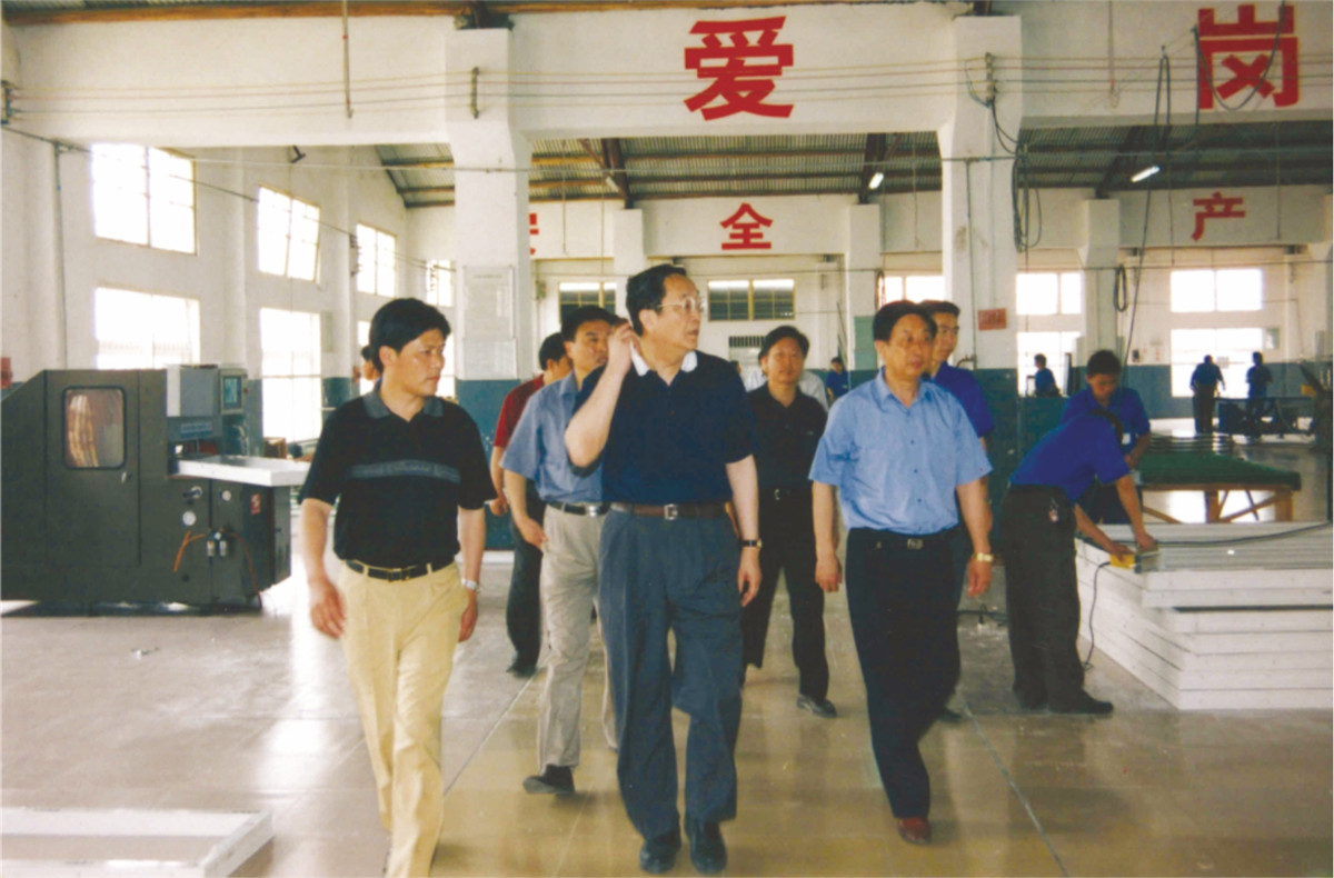 中共中央政治局常委、全國政協(xié)主席俞正聲同志(中)視察山河集團團風工業(yè)園